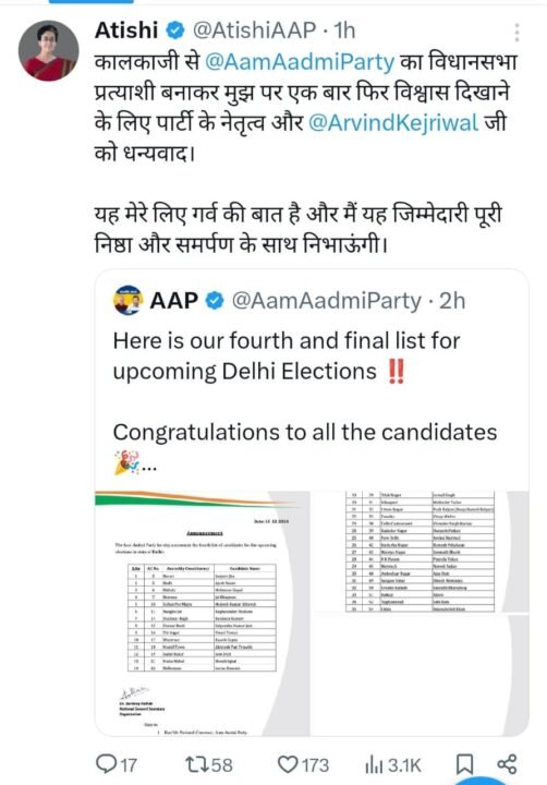 कालकाजी से सीएम आतिशी मार्लेना लड़ेगीं चुनाव