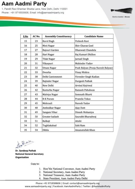 Delhi Vidhansabha Election: अन्य प्रमुख उम्मीदवारों में ग्रेटर कैलाश से सौरभ भारद्वाज, बाबरपुर से गोपाल राय,मालवीय नगर से सोमनाथ भारती, मटिया महल से शोएब इकबाल और राजेंद्र नगर से दुर्गेश पाठक शामिल हैं।