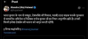 Actor Manoj Kumar Death: कांग्रेस पीसी चीफ जीतू ने दी श्रद्धांजलि..