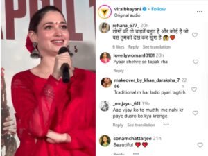 तमन्ना के जबाव को सुनते ही यूजर के तरह- तरह के रिएक्शन सामने आ रहे हैं, एक ने लिखा कि- लोगों की तो चाहतें बहुत है और कोई है जो बस तुमको देख कर खुश है 🙌♥️, एक ने लिखा कि- प्यार चेहरे से टपक रहा है।’ एक ने तमन्ना की तारीफ करते हुए लिखा कि – ‘She’s so so pretty’ एक ने लिखा कि- ‘ It is wht it is, abt brkup hogya sharmayegi bh nh kya, tum bhi na yr🍑❤️ pyar to hai hi❤️🙌’ कुछ इस तरह से दिए रिएक्शन।