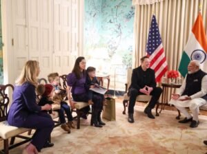 प्रधानमंत्री नरेंद्र मोदी और टेक अरबपति एलन मस्क की गुरुवार को ब्लेयर हाउस में मुलाकात हुई। इस खास मुलाकात में एलन मस्क अपने तीन बच्चों – एक्स, स्ट्राइडर और एज्योर के साथ पीएम मोदी से मिलने पहुंचे। इस मुलाकात की कुछ तस्वीरें सोशल मीडिया पर भी सामने आई हैं, जिसमें मस्क और मोदी के बीच दोस्ताना बातचीत और उनके बच्चों की मौजूदगी को देखा गया।