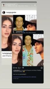 वायरल पोस्ट में चंकी पांडे के भतीजे अहान पांडे और बेटी अनन्या की तस्वीर है और उसमें कपूर और खान्स की चुटकी ली जा रही है, इस पोस्ट को चंकी पांडे ने भी अपनी इंस्टाग्राम की स्टोरी में शेयर किया है।