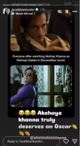 दोनों वीडियो को शेयर करते हुए फराह खान ने कैप्शन में लिखा कि- ‘अक्षय खन्ना आप सच में ऑस्कर डिजर्व करते हैं।’
