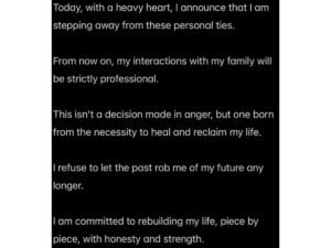 आगे लिखा कि- ‘आज मैं भारी मन से घोषणा कर रहा हूं कि मैं इन पर्सनल रिश्तों से दूर जा रहा हूं। अब से मेरे परिवार के साथ मेरी बातचीत पूरी तरह से प्रोफेशनल होगी। ये गुस्से में लिया निर्णय नहीं है, बल्कि ये फैसला मेरी लाइफ को ठीक करने के लिए और जिंदगी को दोबारा हासिल करने के लिया गया है। मैं अपने पास्ट को अपने फ्यूचर को छीनने नहीं दूंगा। मैं ईमानदारी, ताकत के साथ अपनी जिंदगी को दोबारा बनाने के लिए प्रतिबद्ध हूं।