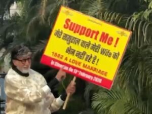 एक्टर अमिताभ बच्चन रविवार के दिन अपने फैंस से मिलने घर के बाहर आएं, इस दौरान उनके हाथ में एक पोस्टर था, जिसमें लिखा था कि- “मुझे सपोर्ट करिए! मेरे ससुराल वाले मेरी वाइफ को भेज नहीं रहे हैं। 1982 ए लव मैरिज।” इस पोस्टर को देखकर फैंस हैरान रह गए। एक्टर का हाथ में पोस्टर लिए वीडियो सोशल मीडिया पर जमकर वायरल हो रहा है।