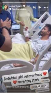 Vicky Jain Admitted in Hospital: पवित्र रिश्ता सीरियल की फेम और एक्ट्रेस अंकिता लोखंडे के पति विक्की जैन को अस्पताल में भर्ती कराया गया है, उनकी कुछ तस्वीरें सोशल मीडिया पर जमकर वायरल हो रही हैं, जिसमें विक्की के हाथ में पट्टी बंधी हुई है। वो हॉस्पिटल के बेड पर बैठे नजर आ रहें हैं, और उनके एक हाथ में ड्रिप लगी हुई है। उनकी एक तस्वीर समर्थ जुरेल ने इंस्टाग्राम की स्टोरी में शेयर किया और उनके स्वस्थ होने की कामना की है।