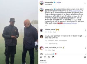 ‘जिस दिन आप फोटो खिंचवाने आए तो मुझे अच्छा नहीं लगा। जब आपने कहा कि मेरे पास फोटो वाला फोन नहीं है। इसलिए मैं आपके लिए फोटो वाला फोन लेकर आया हूं। जब ये चार्ज हो जाए न, तो पहला फोटो आप मेरे साथ खींचना। तभी पास में खड़ा एक व्यक्ति कहता है कि अपनी सिम निकालकर इसमें डाल ले। तभी उसे टोकते हुए अनुपम कहते हैं कि अरे रुक जा, सारे चौधरी यहीं पर इकट्ठे हो गए।”