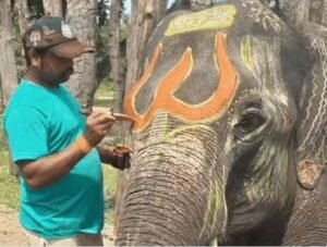 सुबह नहलाने के बाद सिंदूर-गुलाल से मेकअप कैंप के दौरान शुरुआत में सुबह-सुबह नहलाने के बाद तेल मालिश कर चंदन का लेप लगाया जाता है। इसके बाद सिंदूर और गुलाल से मेकअप किया जाता है। टाइगर रिजर्व के अधिकारी कहते हैं कि हाथी लगातार काम करते हैं, लेकिन इन सात दिनों के लिए उनसे काम नहीं लिया जाता। इस दौरान उनका काम सिर्फ एक है, खाओ, पीओ और मौज करो।