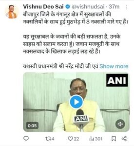 Bijapur Naxal Attack: सीएम विष्णु देव साय ने इस सफलता पर सुरक्षाबलों की सराहना करते हुए कहा कि छत्तीसगढ़ सरकार नक्सल उन्मूलन के लिए पूरी प्रतिबद्धता के साथ कार्य कर रही है। उन्होंने कहा कि यह सुरक्षाबल के जवानों की बड़ी सफलता है,और नक्सलवाद की समाप्ति के लिए सरकार का संकल्प मजबूत है। मुख्यमंत्री ने नक्सल प्रभावित क्षेत्रों में माओवादियों से हिंसा छोड़कर आत्मसमर्पण करने और सरकार की पुनर्वास योजनाओं का लाभ उठाने की अपील की है।