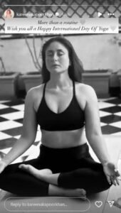 करीना कपूर ने योग करते हुए ब्लैक एंड व्हाइट तस्वीर साझा की। उन्होंने लिखा, “योग एक रूटीन से कहीं बढ़कर है। यह अनुशासन और आत्मचिंतन है। सभी को योग दिवस की शुभकामनाएं।”