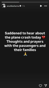 “भगवान उन सभी को शक्ति प्रदान करें जिन्होंने अपने प्रियजनों को खो दिया है और विमान दुर्घटना से प्रभावित हुए हैं।”