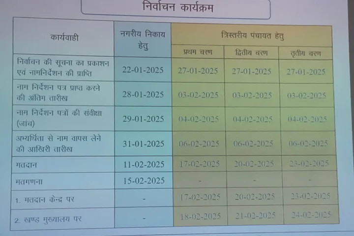 CG News:छत्तीसगढ़ में नगरीय निकाय चुनाव की तारीखों का ऐलान हो चुका है.आपकाे बता दें की नगरीय निकाय चुनाव एक चरण में होगा और वहीं ग्रामीण क्षेत्र के निकाय में तीन चरणों में मतदान होगा,आपकाे बतादें की 22 तारीख से प्रक्रिया शुरु होगी और उसी दिन से नॉमिनेशन फॉर्म की प्रक्रिया भी शुरु हाे जाएगी.जो 31जनवरी तक चलेगी.इसके बाद स्क्रूटनी और नाम वापसी के तारीख के बाद नामों की घोषणा होगी.11फरवरी को शहरी क्षेत्र में मतदान होगा औऱ 15 फरवरी को मतगणना होगी।