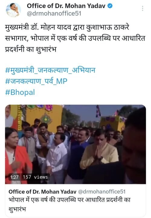 CM MOHAN: मध्य प्रदेश की मोहन सरकार 13 दिसंबर को अपने कार्यकाल का पहला साल पूरा करने जा रही है। इस अवसर पर मुख्यमंत्री डॉ. मोहन यादव ने मिंटो हॉल में सरकार की उपलब्धियों का रिपोर्ट कार्ड पेश किया। इस रिपोर्ट में सरकार द्वारा पूरे किए गए वादों और विकास कार्यों को विस्तार से बताया गया। कार्यक्रम में उपमुख्यमंत्री जगदीश देवड़ा, राजेंद्र शुक्ल, खजुराहो सांसद व प्रदेश अध्यक्ष वीडी शर्मा भी मौजूद रहे।