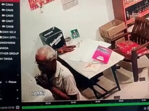 वहीं दुकान के अंदर एक बुजुर्ग हाथ जोड़े खड़ा रहता है।