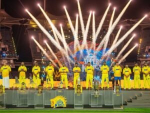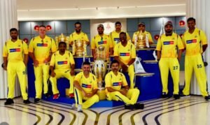 सभी प्लेयर्स ने CSK की पांचों IPL ट्रॉफियों के साथ तस्वीरें खिंचवाई।