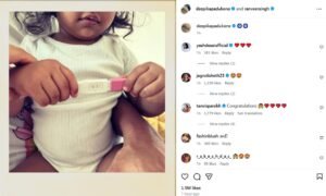दीपिका और रणवीर सिंह ने अपने जॉइंट्स अकाउंट से बेटी दुआ की तस्वीर शेयर की, जिसमें बेटी ने एक प्रेग्नेंसी टेस्ट किट पकड़ी हुई है, जिसमें पॉजिटिव रिजल्ट नजर आ रहा है। लेकिन दुआ का चेहरा पूरा नहीं दिख रहा। दीपिका की दूसरी प्रेग्नेंसी की खबर सुनकर लोग कपल को बधाईयां दे रहें है।
