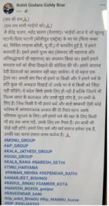लॉरेंस गैंग के सदस्य ने फेसबुक पर किया पोस्ट …