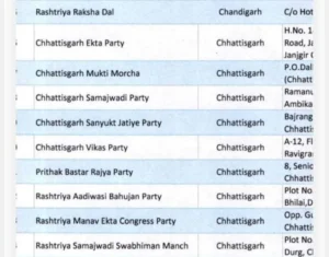 छत्तीसगढ़ के 9 दलों का भी हुआ रजिस्ट्रेशन निरस्त