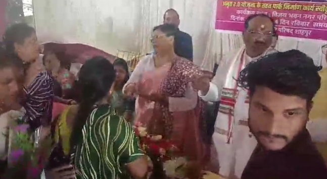 मध्यप्रदेश के बैतूल के शाहपुर में रविवार को में आयोजित भूमिपूजन कार्यक्रम के दौरान केंद्रीय राज्यमंत्री दुर्गादास उइके और घोड़ाडोंगरी विधायक गंगा उइके को एक महिला ने जमकर खरी-खोटी सुनाई। कार्यक्रम में पहुंची गीता बाई, जो कि शाहपुर के पंडित दीनदयाल उपाध्याय वार्ड की निवासी हैं, ने नेताओं पर आरोप लगाते हुए कहा कि चुनाव के समय वोट मांगने के लिए नेता जनता के सामने हाथ जोड़ते और पैर पड़ते हैं, लेकिन चुनाव के बाद उनकी समस्याओं पर ध्यान नहीं देते।