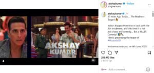 वर्क फ्रंट की बात करें तो अक्षय कुमार हाल ही में ‘केसरी चैप्टर 2’ में नजर आए थे, जिसमें उनके साथ अनन्या पांडे और आर. माधवन भी थे। फिल्म को दर्शकों के अच्छे रिएक्श मिले। मीडिया पर इसे खूब सराहा गया है। हालांकि, बॉक्स ऑफिस पर यह फिल्म अभी तक 100 करोड़ के आंकड़े से काफी दूर है।