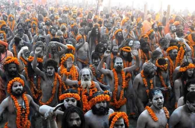 कुंभ के दौरान, नागा साधु विभिन्न अखाड़ों में अमृत स्नान करते हैं, जहां महिला नागा साधु भगवा कपड़े पहनकर रहती हैं। नागा साध्वियां कभी भी सार्वजनिक रूप से निहत्थे नहीं रही हैं। नागा साधु लंबे बाल रखते हैं जबकि नागा साधु मुंडा रहते हैं और पूरी तरह से ब्रह्मचर्य का पालन करते हैं। कुंभ में देश-विदेश से साधुओं का भी जमावड़ा लगा रहता है।
