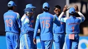 भारत की ओर से दीपेश देवेन्द्रन और कनिष्क चौहान ने 2-2 विकेट चटकाएं।।