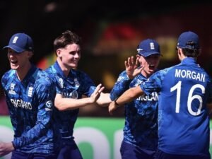 टारगेट का पीछा करने उतरी इंग्लैंड से जोसेफ 17, बेन मेयस 45 रन, थॉमस ने 31 रन, जेम्स 28 रन, वहीं कालेब फॉल्कनर ने 67 बॉल पर 115 रन बनाए, जिसमें 9 चौके, 7 छक्के शामिल रहें। ओपनर बेन डॉकिन्स ने 56 बॉल पर 66 रन बनाए, जिसमें 7 चौके, 2 छक्के शामिल रहें। फिर टीम को जीत नही मिली। इसी के साथ इंग्लैंड टीम ने 40.2 ओवर में 311 रन बनाकर ही सिमट गई।
