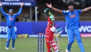 भारत के लिए गेंदबाजी में उधव मोहन और कप्तान आयुष म्हात्रे ने 3-3 विकेट झटके। आरएस अम्ब्रिश को 2 विकेट और हेनिल पटेल, खिलन पटेल को 1-1 विकेट मिला।
