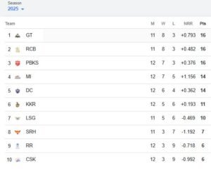 16 मई, 2025 (शुक्रवार) – शाम 7:30 बजे – राजस्थान रॉयल्स बनाम पंजाब किंग्स (जयपुर)