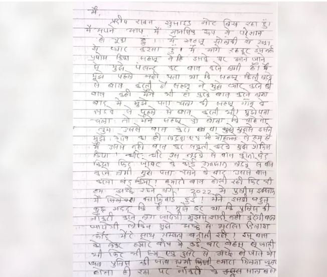 सुसाइड नोट में मृतक ने लिखा कि डर था वो मुझसे शादी नहीं करेगी. 2022 में खुशबू पुलिस एग्जाम में क्वॉलिफाई हुई थी. मैंने उसकी बहुत मदद की. मुझे डर था कि अब वो मुझसे शादी नहीं करेगी, लेकिन वह मुझे भरोसे में रखकर मुझसे संबंध बनाती रही. नौकरी के दो साल बाद खुशबू बड़वानी के अनुराग से बात करने लगी. इसकी जानकारी मुझे इंस्टाग्राम चैट से लगी.