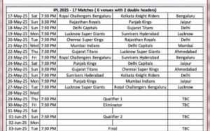 IPL 2025 New Shedule: भारत और पकिस्तान के बीच चल रहे तनाव के चलते आईपीएल मैच रोक दिया गया था। लेकिन अब नया शेड्यूल जारी किया गया है। अब IPL 2025 का मैच 17 मई से शुरू होगा।