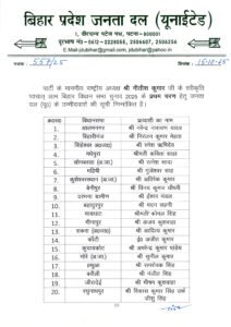 - मंत्री विजय कुमार चौधरी को फिर से मैदान में उतारा गया – उनके बेटे की जगह उन्होंने चुनाव लड़ेंगे।