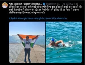 कटाई गांव, आज़मगढ़ निवासी 16 वर्षीय जिया राय English Channel को पार करने वाली विश्व की सबसे कम उम्र की तथा सबसे तेज़ Para Swimmer बन गयी हैं। Autism Spectrum Disorder से पीड़ित होने के बावजूद उनका यह उपलब्धि हासिल करना, निश्चय ही देश के लिए गर्व की बात है। pic.twitter.com/FrMFkeXBJj