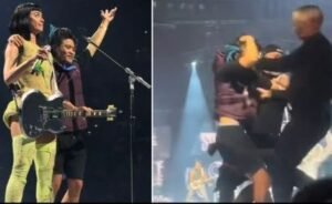 Katy Perry Concert Viral Video:अंतरराष्ट्रीय पॉप स्टार कैटी पैरी का सिडनी में लाइव कॉन्सर्ट रखा गया था, जब कैटी मंच में परफॉर्मेंस दे रहीं थी। अचानक एक शख्स सिक्योरिटी को चकमा देकर मंच पर चढ़ गया और युवक उनके पास पहुंचकर उनके कंधे पर हाथ रखकर डांस करने लगा। यह हरकत देखकर कैटी कुछ क्षणों के लिए असहज हो गईं, लेकिन उन्होंने बेहद प्रोफेशनल अंदाज में स्थिति को संभालते हुए अपना गाना जारी रखा।