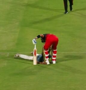 विराट कोहली ने धमाकेदार पारी खेली। किंग कोहली ने 13वें ओवर में अपनी फिफ्टी पूरी कर ली थी,इसी बीच एक फैन मैदान पर घुस आया और कोहली के पैरों पर गिर गया।