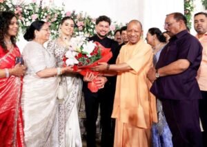 Kuldeep Yadav Grand Reception: भारतीय क्रिकेट टीम के स्टार स्पिनर कुलदीप यादव ने 14 मार्च को मसूरी में अपनी बचपन की दोस्त वंशिका के साथ शादी के बंधन में बंधे थे। ऐसे में बीते दिन 17 मार्च को लखनऊ में गोल्फ सिटी स्थित होटल द सेंट्रम में रिसेप्शन का आयोजन किया गया था, जिसमें सीएम योगी, अखिलेश यादव समेत कई राजनेता और कई क्रिकेट जगत के स्टार शामिल शामिल हुए।