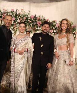 इस रिसेप्शन पार्टी में टीम इंडिया के हेड कोच गौतम गंभीर, क्रिकेटर शिखर धवन पत्नी सोफी, रविंद्र जडे़जा अपनी पत्नी रिबावा के साथ, ऋषभ पंत, यशस्वी जैसवाल समेत कई सितारे शामिल हुए।