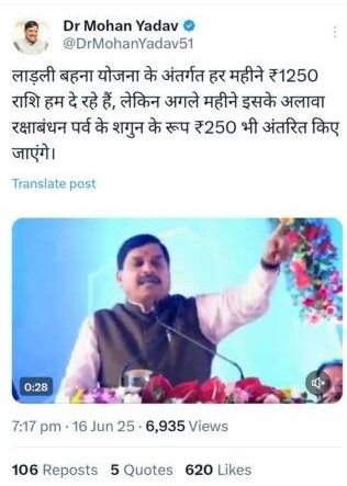 ladli behna 25th installment : लाडली बहना योजना की 25वीं किस्त जारी