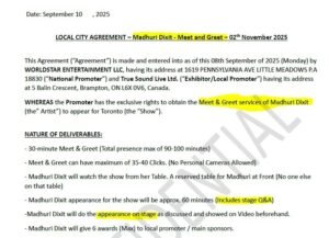 विवाद बढ़ने के बाद माधुरी की टीम ने उनका कॉन्ट्रैक्ट कॉपी पब्लिक की, जिसमें साफ लिखा है कि एक्ट्रेस को सिर्फ 60 मिनट स्टेज पर रहना था, जिसमें फैंस से सवाल-जवाब और इंटरैक्शन शामिल था।