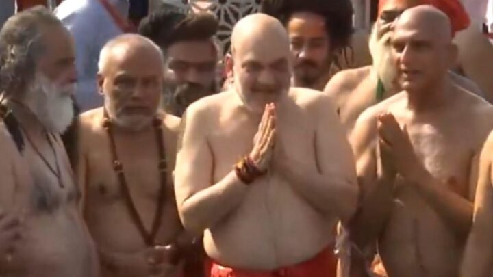 अमित शाह ने साधु-संतों के साथ लगाई आस्था की डुबकी