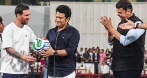 सचिन ने Messi को दिया खास गिफ्ट: अर्जेंटीना के दिग्गज फुटबॉलर लियोनेल मेस्सी के ‘G.O.A.T. टूर ऑफ इंडिया’ के दौरान भारत दौरे पर हैं, मेसी ने कोलकाता और हैदराबाद दौरे के बाद मुंबई पहुंचे। वहां मुंबई के वानखेड़े स्टेडियम में गए, लोग मेसी का बड़ी बेसब्री से इंतजार कर रहें थे। जब वहां मेसी पहुंचे तो messi-messi के चारो तरफ नारे गूंजने लगे। स्टेडियम उनका जोरदार स्वागत किया गया।