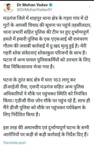 SI की मौत पर सीएम ने एक्स कर जताया दुख:
