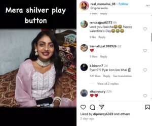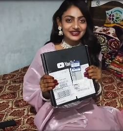 महाकुंभ वायरल गर्ल मोनालिसा ने यूट्यूब के भेजे गए सिल्वर बटन को हाथ में लिए यूजर्स को क्रेडिट देते हुए कहा कि- ”आप लोगों की वजह से मुझे फाइनली सिल्वर प्ले बटन मिल ही गया। आप सब मुझे यूं ही प्यार करते रहिए और यूं ही सपोर्ट करते रहिए।” मोनालिसा ने सफलता की पहली सीढ़ी चढ़ ली है। इस दौरान मोनालिसा ने हाथ जोड़कर सभी को धन्यवाद दे रहीं है।