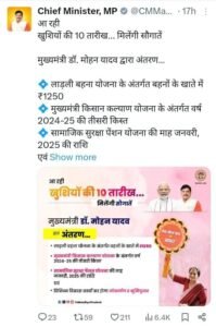 MP CM Laadli Behan Scheme: 10 फरवरी यानि आज मध्य प्रदेश के मुखिया डॉ. मोहन यादव देवास जिले के सोनकच्छ तहसील स्थित पीपलरावां ग्राम में एक ऐतिहासिक कार्यक्रम का आयोजन करेंगे। इस अवसर पर वह ‘मुख्यमंत्री लाड़ली बहना योजना’, सामाजिक सुरक्षा पेंशन योजना और किसान कल्याण योजना के लाभार्थियों को राशि हस्तांतरित करेंगे।