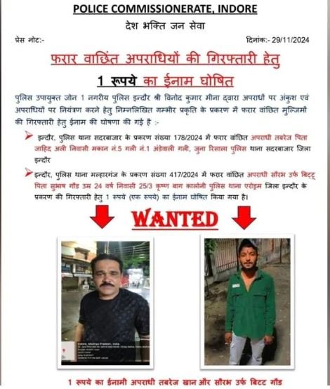 इंदौर पुलिस ने लगाया पोस्टर, लिखा- ‘ये वॉन्टेड हैं’