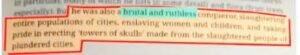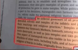 इस बार सामाजिक विज्ञान की किताब में मुगल शासन की बरबरता के बारें में बताया गया है। इस किताब में बाबर को एक निर्दयी विजेता बताया गया, जिसने कई शहरों में कतलेआम कराया और अकबर के शासनकाल को ‘क्रूरता और सहिष्णुता का मिश्रण’ कहा गया हैं। वहीं औरगंजेब के बारें कहा गया कि उसने मंदिर गुरुद्वारों को नष्ट कराया था।