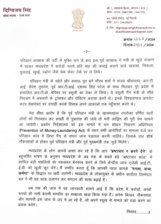 Bhopal Saurabh Sharma Update News: दिग्विजय सिंह ने इस पूरे मामले में प्रधानमंत्री नरेंद्र मोदी से दखल देने की अपील करते हुए एक पत्र भी लिखा है। उन्होंने आरोप लगाया कि सरकार के गिरने के बाद भ्रष्टाचार के इन खेलों को रोकने के लिए कोई कार्रवाई नहीं हुई थी और यह मामला दबाने की कोशिश की जा रही थी।