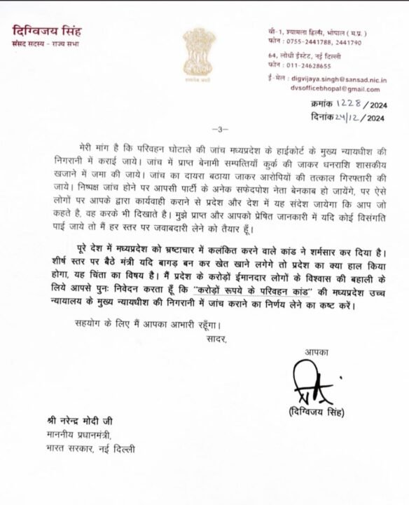 दिग्विजय सिंह ने पीएम मोदी को लिखा पत्र