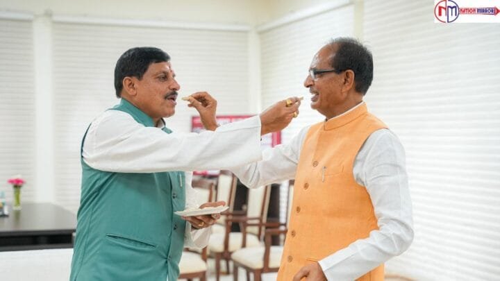 पूर्व सीएम शिवराज सिंह चौहान मुख्यमंत्री डॉ. मोहन यादव से मिलने सीएम हाउस पहुंचे। दोनों ने एक-दूसरे का मुंह मीठा कराया। डॉ. मोहन यादव ने कहा, ‘भाई साहब तो अब दिल्ली जा रहे हैं।’