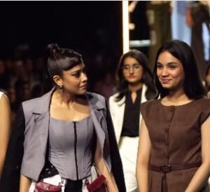 इवेंट के दौरान उन्होंने ग्रे कलर का डिजाइनर टाप और ऊपर खूबसूरत ग्रे कलर का कोट पहन रखी हैं। और नीचे बैल्क पैंट और व्हाइट कोक कलर से ड्रेस को टैचप के साथ उनके लुक को और स्टाइलिश बनाया गया है। उस आउटफिट को अनन्या मुत्ता और हिमांशी गर्ग ने डिजाइन किया हैं और नुसरत उनके आउटफिट पहनकर शो स्टॉपर बनीं।